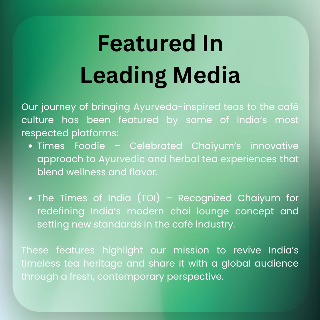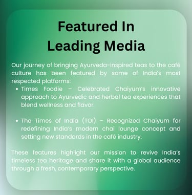 At Chaiyum Café, we’re more than just a chai brand — we’re a growing family that believes in passion, creativity, and connection. Joining us means becoming part of a community that celebrates India’s love for chai while creating meaningful experiences for our customers every day. Whether you’re a tea enthusiast, a hospitality expert, or someone eager to learn, we offer a supportive space to grow, share ideas, and be part of something refreshing.